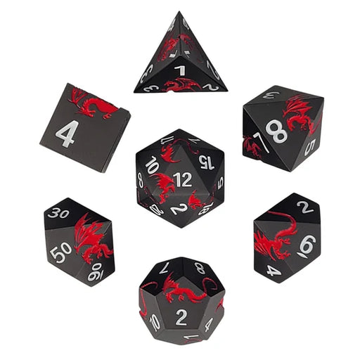 Original price $34.99 - Original price $34.99Original price$34.99$34.99 - $34.99Current price $34.99| /This solid metal RPG dice set features a red dragon in flight in a Matte Gun Metal finish and white numbers.