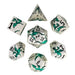 This set features a Dragon in attack mode filled with Green Enamel and a Silver metal finish.
